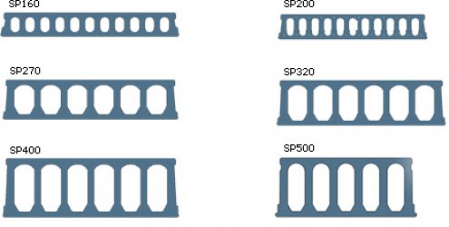Detalii: Fâşiile cu goluri ERGON tip SP au secţiune trapezoidală. Partea inferioară este finisată neted păstrând forma cofrajului metalic. Lăţimea nominală este 1200 mm; lungimea arbitrară.